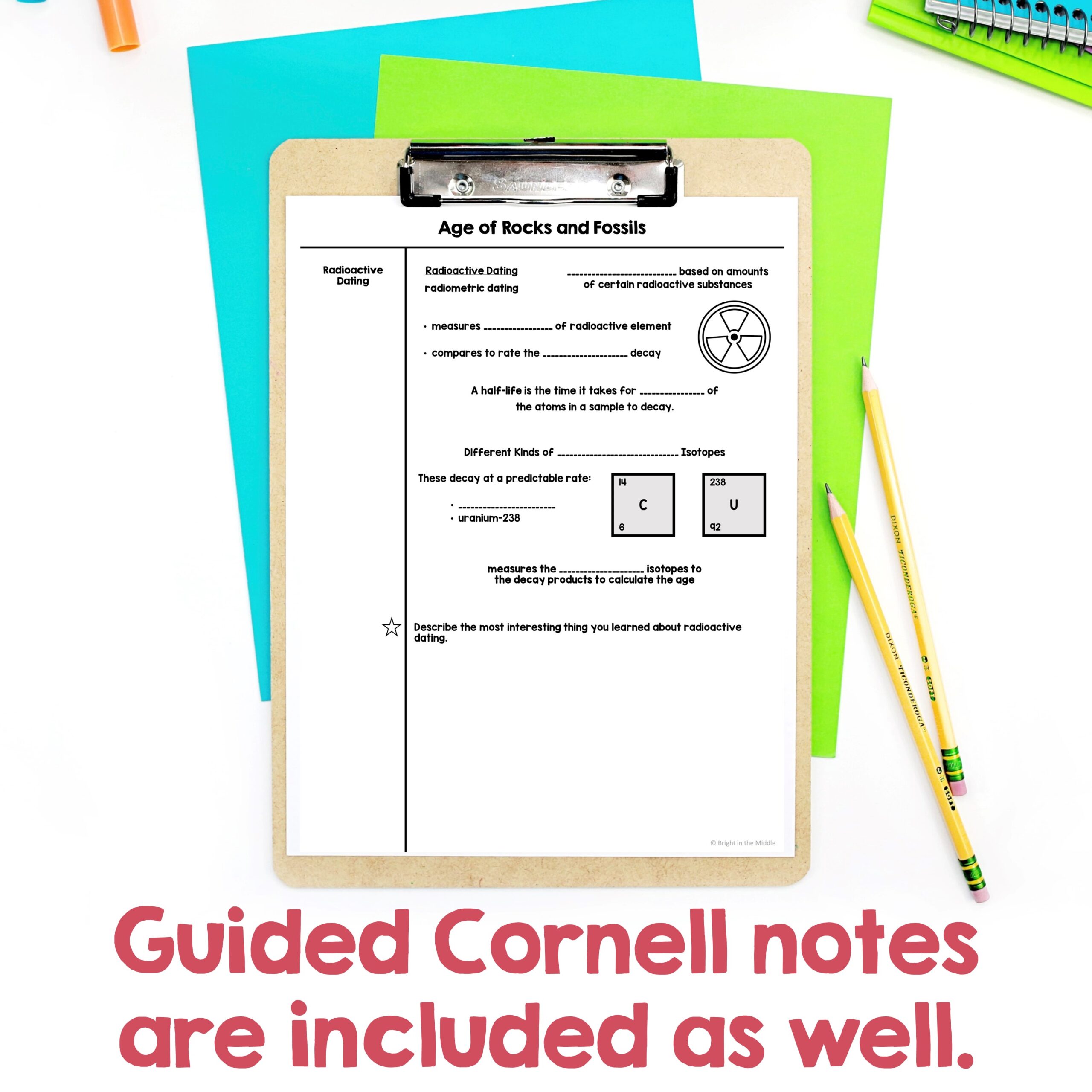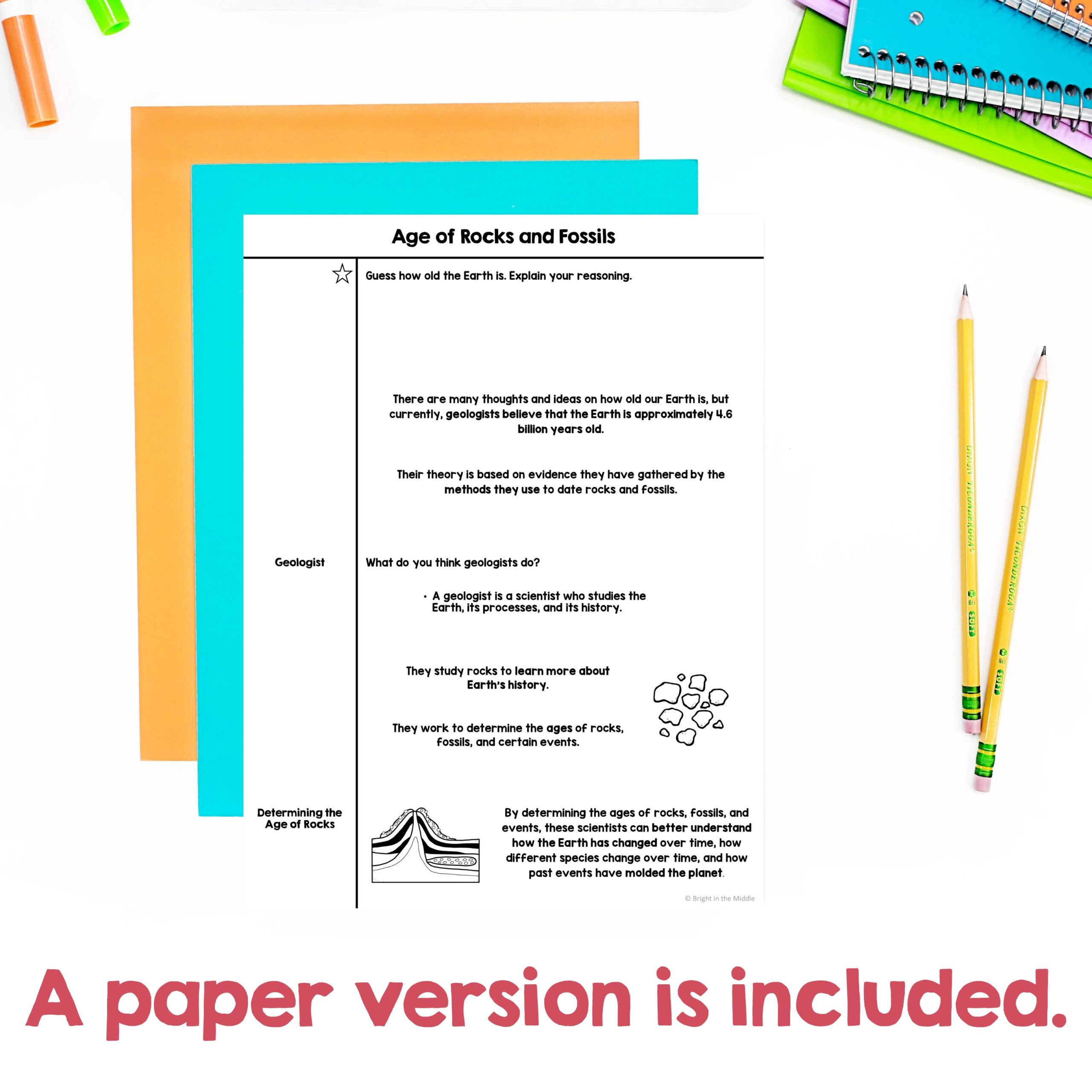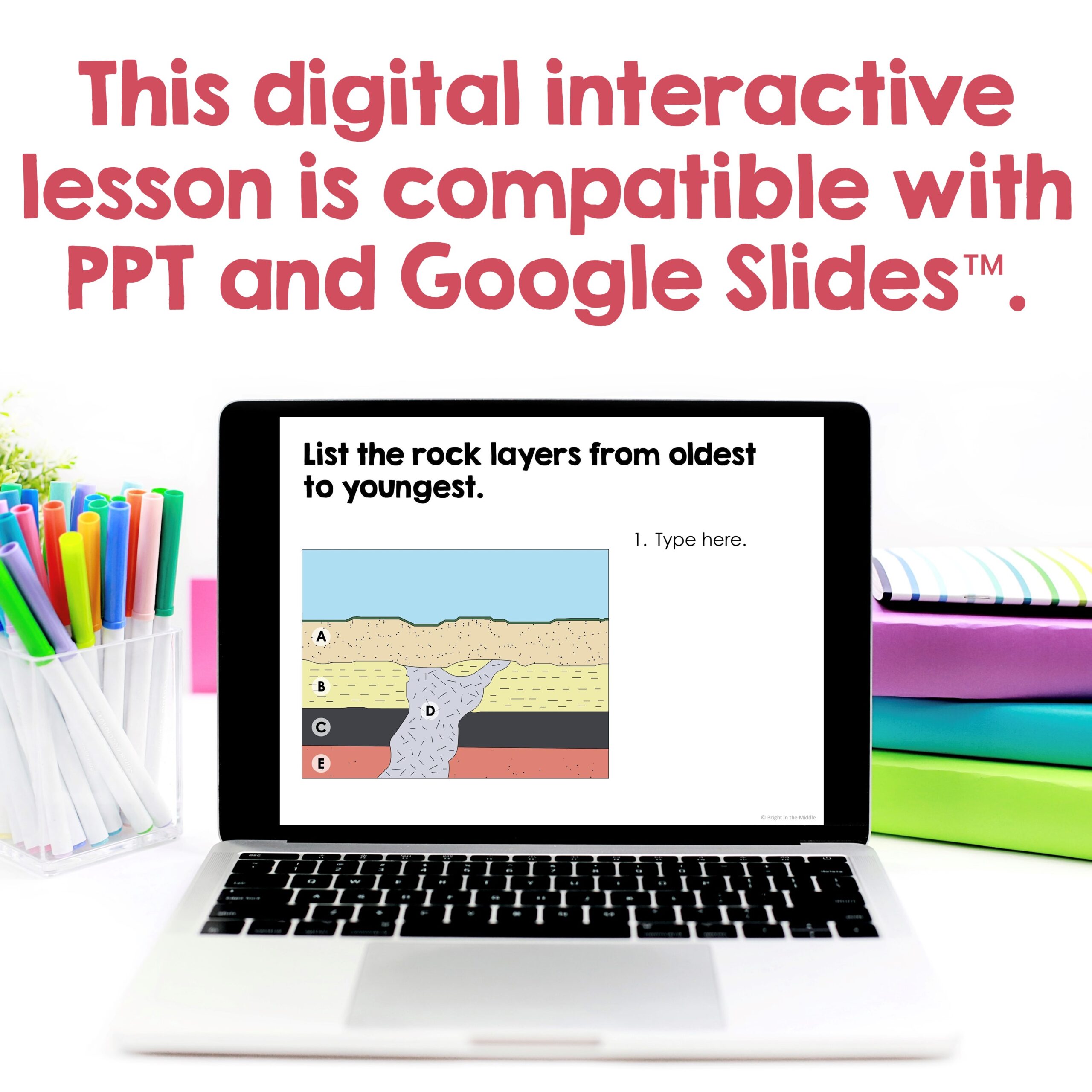 Students will love learning how scientists find the age of rocks, fossils, and events using relative dating and absolute dating methods with this interactive lesson! Interactive lessons are designed to engage students while reducing their cognitive load. Students will learn all about relative dating methods and absolute dating methods in chunks of information with embedded activities to help them to process!