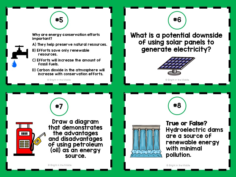 Looking for an energy conservation activity that focuses on the conservation and stewardship of renewable and nonrenewable resources? This is the one!! Task cards are one of my all-time favorite classroom tools. They serve many purposes and can be used to meet the individual needs of your students. They are a wonderful alternative to a classic worksheet, and most of the time, students do not even realize that they are learning and working! ⬅️ That’s the best part!