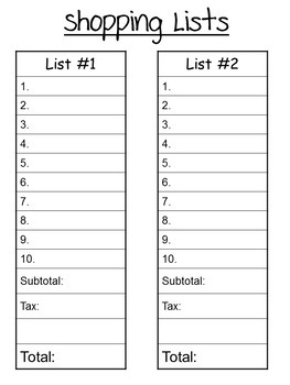 They will create four shopping list! They will be given a scenario card for each list that will give them a budget and a sales tax rate.