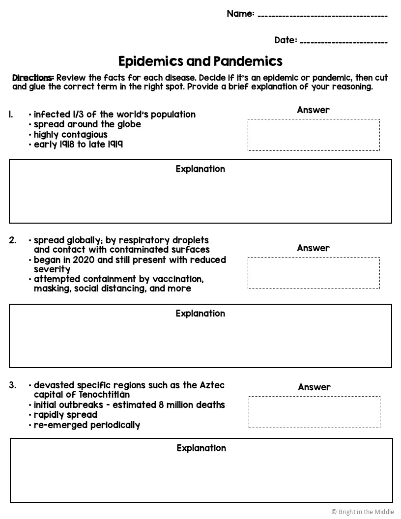- Don’t want to cut and glue? You can have students write down epidemic or pandemic in the blank.