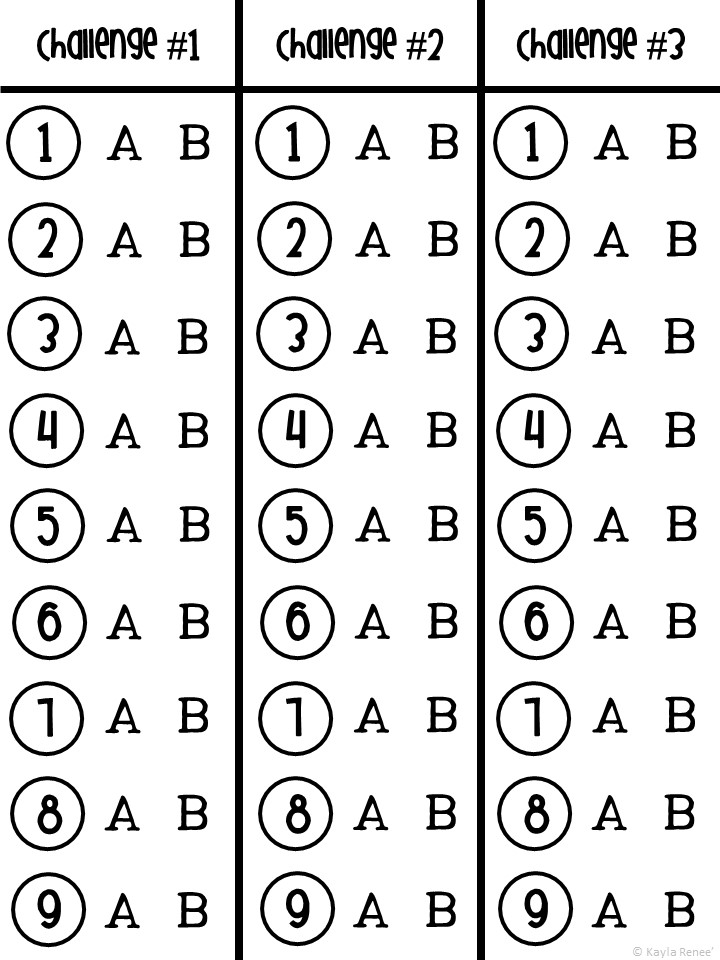 ★ Students should continue until all nine cards are complete, and then they may move on to the next challenge.