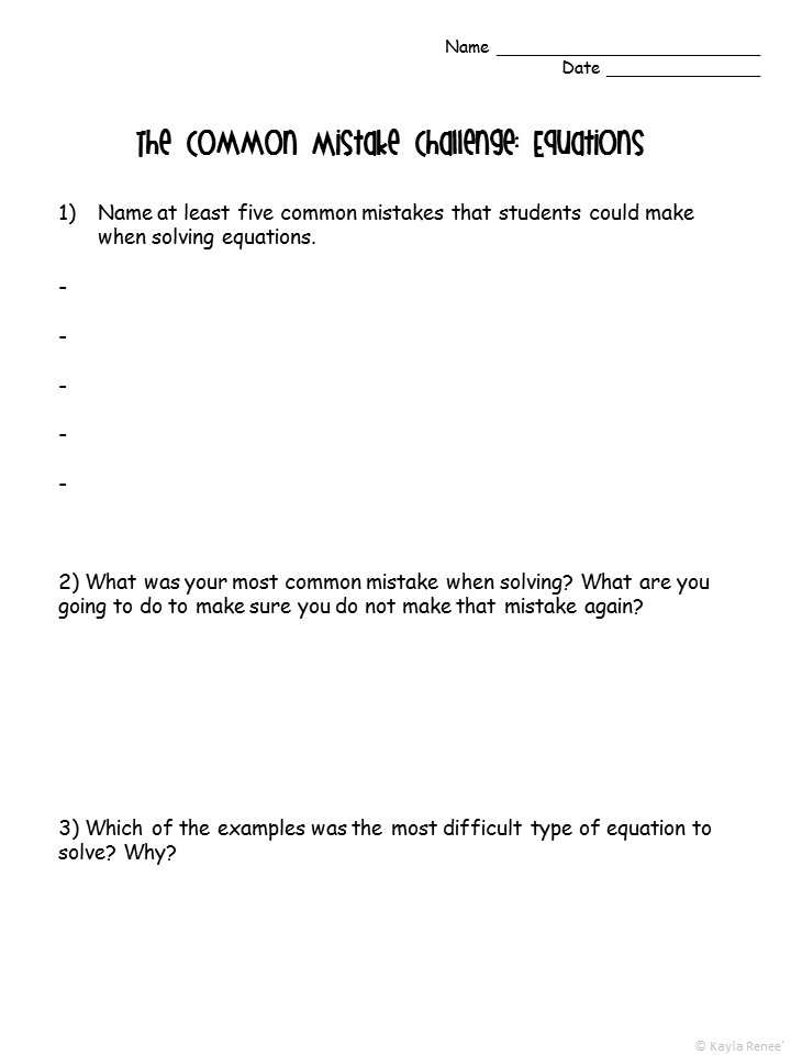 Looking for a fun game for solving equations? Equations can be a difficult concept for some students to grasp. Most of the time, it is due to very common mistakes. In this challenge, students are faced with some common mistakes. Their job is to identify these mistakes so that they will not make the same mistakes in the future.