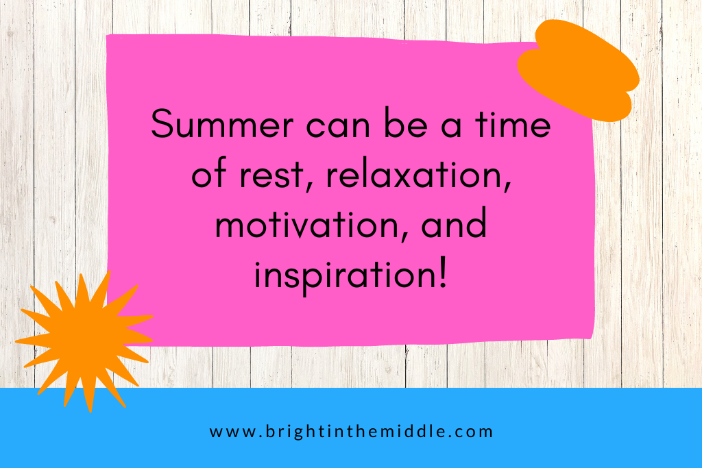 Summer break is a time of rest, relaxation, inspiration, rejuvenation, and more! Don’t get bogged down in the details. Let ideas, inspiration, and overall exploration take over.